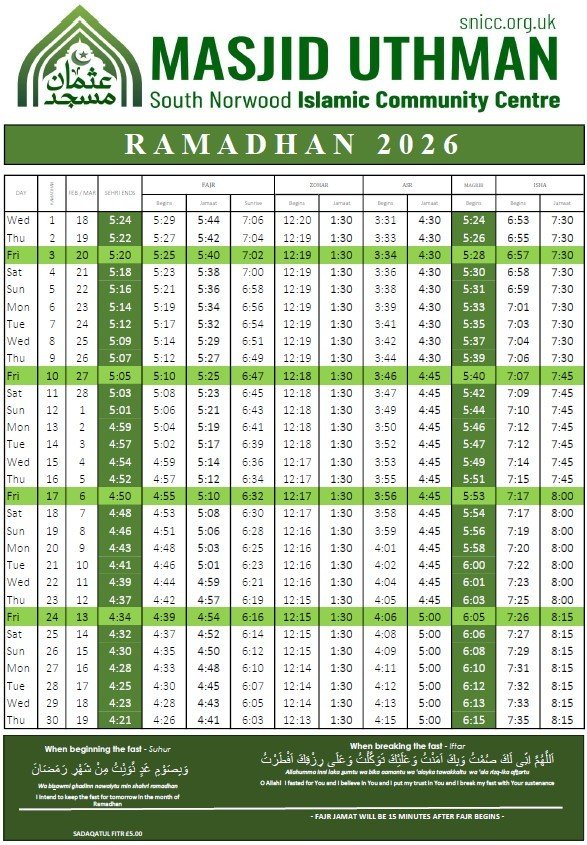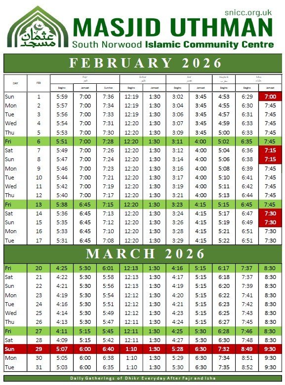 SNICC is open every day of the year, providing prayer facilities for the community, including all five daily prayers, Friday (Jumu'ah) prayers, and special prayers such as Taraweeh during Ramadan and Eid prayers. We welcome everyone to join us in worship throughout the year. Additionally, we offer on-site parking for approximately 35 cars to accommodate those attending prayers.